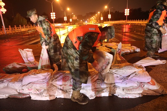 7月31日至8月2日,北京市懷柔區(qū)懷河水位持續(xù)高漲,中部戰(zhàn)區(qū)空軍某部組織防汛分隊(duì),赴懷柔區(qū)大杜兩河村大橋和廟城鎮(zhèn)進(jìn)行支援,開(kāi)展防汛沙袋裝填、防汛墻構(gòu)筑等工作,配合地方快速控制汛情蔓延。