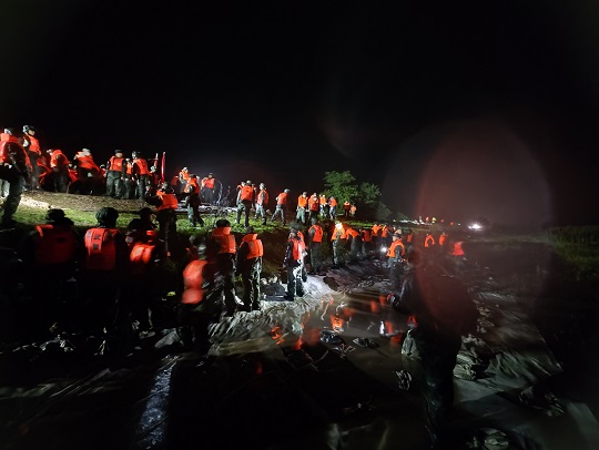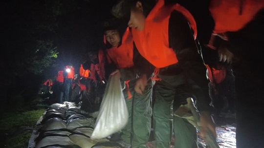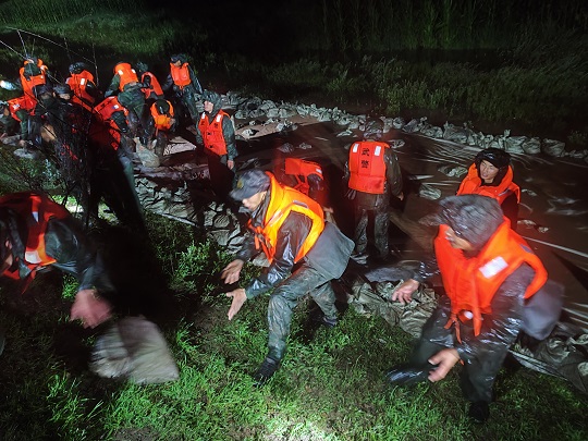 8月4日19時25分,武警黑龍江總隊齊齊哈爾支隊出動200余名官兵,動用車輛10余臺,第一時間到達(dá)現(xiàn)場。連夜奮戰(zhàn)5小時,雅魯河河道兩側(cè)壘筑沙袋4700余個,筑起長280米,高0.5米的阻隔沙墻,處置管涌2處,完成13米道路阻堤任務(wù),利用無紡布封補滲點110米,筑起守護(hù)人民群眾的安全堤壩。截至目前,搶險救援工作仍在緊張進(jìn)行中。