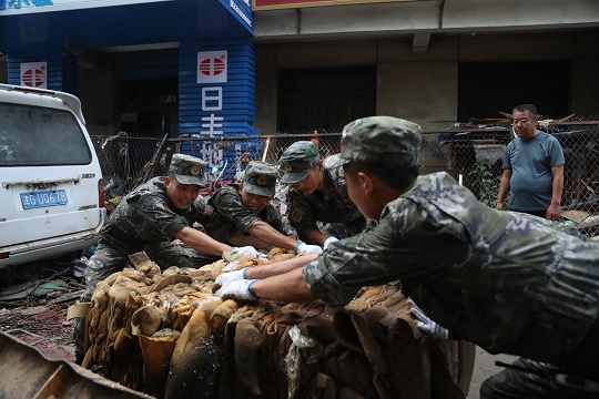 8月5日,隨著洪水逐步消退,為盡快恢復(fù)生產(chǎn)生活秩序,已經(jīng)連續(xù)奮戰(zhàn)5天5夜的武警官兵,又投入到災(zāi)后清淤清障、衛(wèi)生消殺、醫(yī)療救治等任務(wù)中。