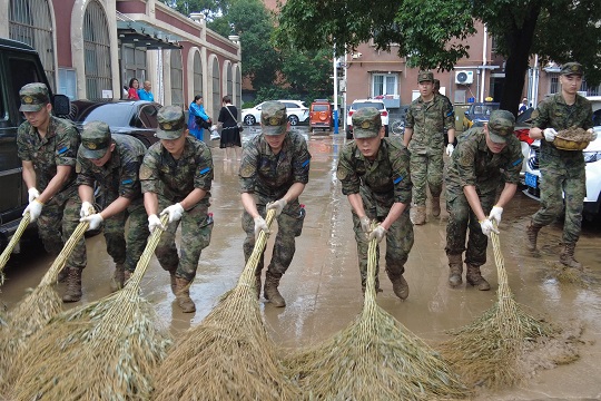 在河北省保定市方向,河北省軍區(qū)專門設立前方指揮部,調集4000余名民兵和136艘沖鋒舟緊急馳援保定等地,夜以繼日奮戰(zhàn)在救援一線,打通一條條救援生命線,為人民筑起一道道“鋼鐵長城”。