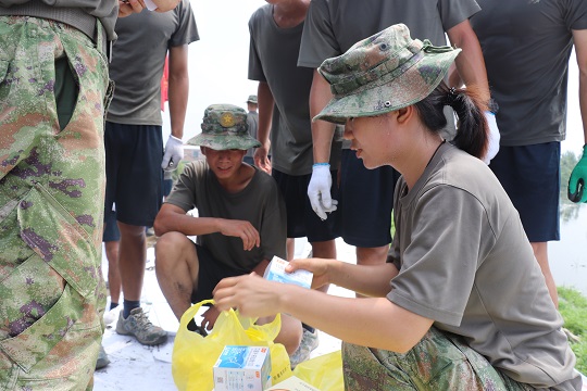 耿穎慧到達任務區(qū)后,第一時間投入工作??焖俅罱镁茸o所,歸納整理藥品,參加堤壩巡診……8月8日,迎戰(zhàn)洪峰前,她主動加入到堤壩加固任務中。裝沙、扎口、搬運、筑壩……哪里需要哪里就有她的身影。汗水打濕衣襟,鍬鎬磨出血泡。休息調整期間,參加過維和任務的耿穎慧來到受災群眾中,為大家巡診擦藥。