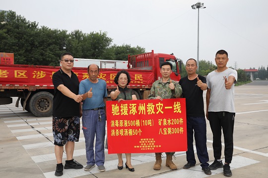 圖為10噸消毒原液從涉縣挺進(jìn)涿州抗洪一線。