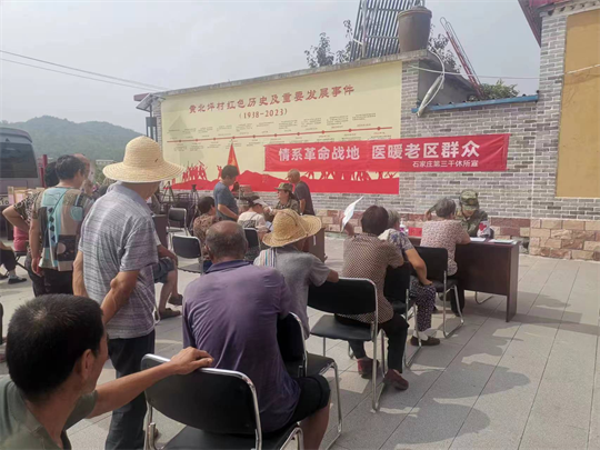 8月9日一早,河北省軍區(qū)石家莊第三干休所醫(yī)療服務(wù)隊(duì)攜帶血壓計(jì)、心電圖機(jī)、血糖檢測(cè)儀等醫(yī)療設(shè)備驅(qū)車一百多公里,來到太行山深處的革命老區(qū)——河北省贊皇縣黃北坪村,為剛剛受到暴雨山洪侵襲的村民進(jìn)行健康體檢、常見病篩查及災(zāi)后防疫宣講。