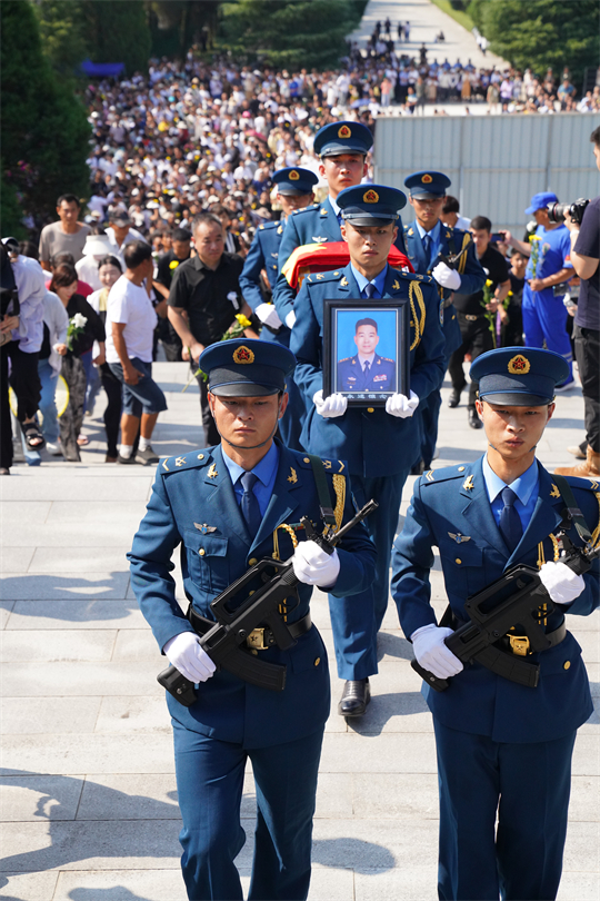 圖為禮兵手捧烈士遺像和骨灰盒緩步走向墓地。新華社發(fā) 王嘉楠 攝