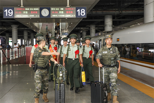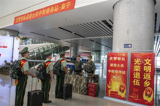 9月1日,武警廣西總隊(duì)南寧支隊(duì)熱烈歡送2023年度夏秋季退役士兵光榮返鄉(xiāng),通過組織歡送儀式、設(shè)立中轉(zhuǎn)接待站等方式,確保退役士兵返鄉(xiāng)安心、暖心。退役士兵戀戀不舍地離開他們揮灑汗水、奉獻(xiàn)青春的熱土,踏上返鄉(xiāng)征程。