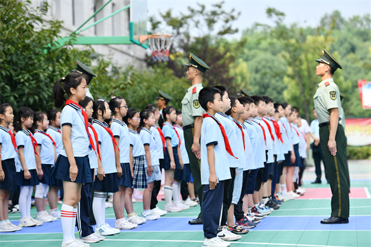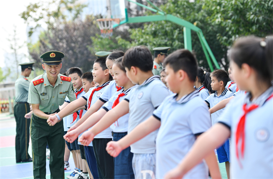 9月11日,武警安徽總隊合肥支隊聯(lián)合駐地學(xué)校開展“踔厲奮發(fā)強國防 勇毅前行向復(fù)興”為主題的全民國防教育進(jìn)軍營活動,通過普及國防知識、參觀武器裝備、學(xué)做軍事動作等,增強學(xué)生國防意識。
