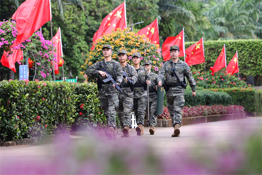 9月30日,國慶中秋“雙節(jié)”放假期間,擔(dān)負(fù)城市武裝巡邏任務(wù)的武警海南總隊(duì)海口支隊(duì)官兵始終堅(jiān)守在執(zhí)勤一線,他們?cè)谏倘Α⒐珗@、城市主干道等重點(diǎn)部位巡邏警戒,確保駐地安全穩(wěn)定。