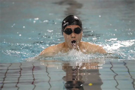 哨聲一響,泳池里激起無數(shù)浪花,選手們個個宛如蛟龍出海。他們劈波斬浪,你追我趕,在偌大的游泳池中盡顯身手。