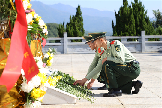 圖為武警官兵向革命先烈獻(xiàn)花。