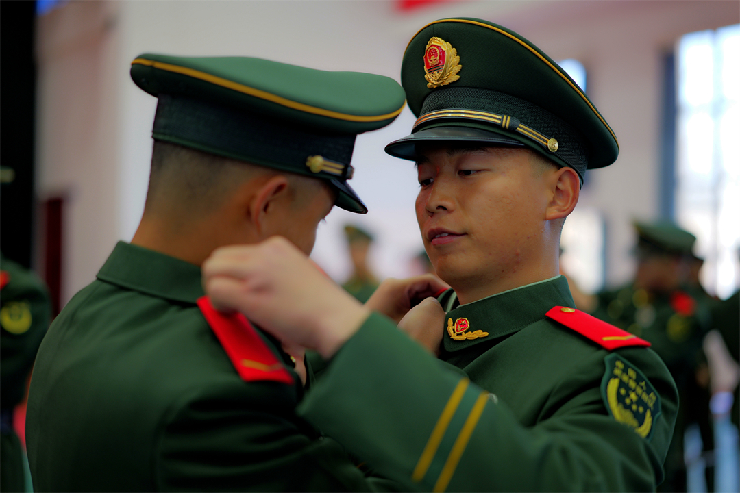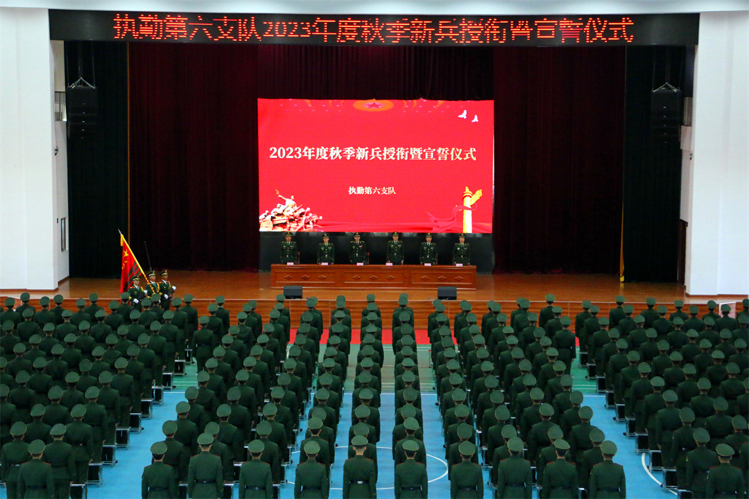近日,武警北京總隊(duì)執(zhí)勤第六支隊(duì)新兵大隊(duì)舉行2023年度秋季入新兵授銜暨入伍宣誓儀式。經(jīng)過三個(gè)多月淬火錘煉,新兵們褪去青澀收獲成長,迎來屬于他們的“成人禮”。