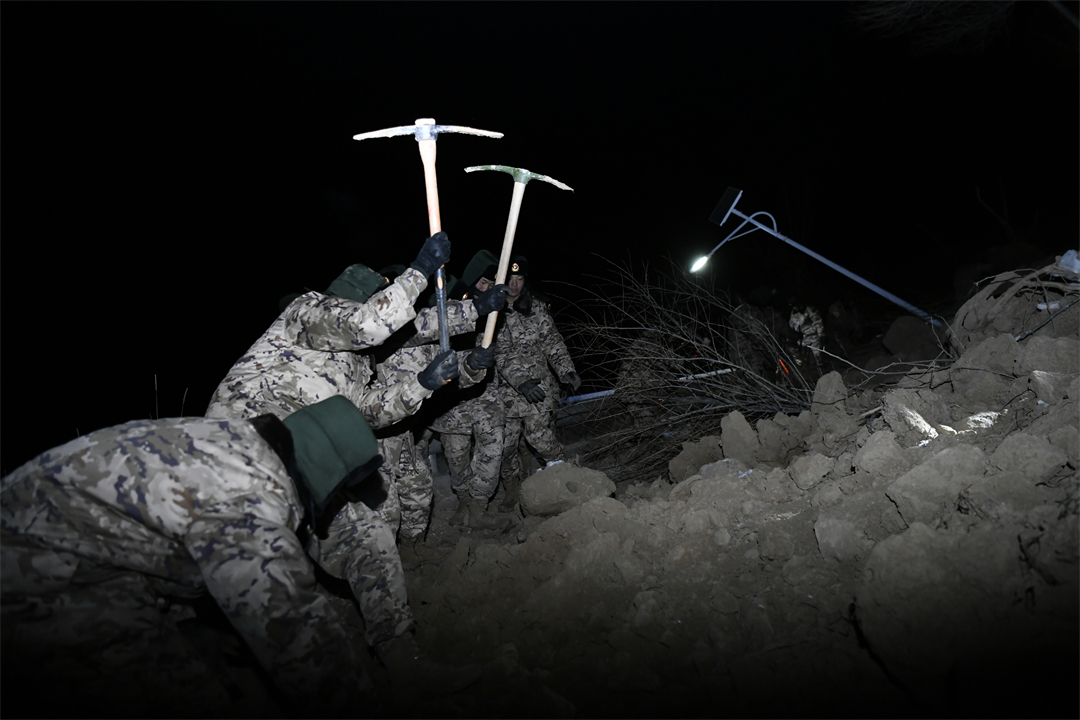 武警官兵不畏嚴(yán)寒、不怕艱苦,克服種種困難,采取摩托化和徒步行軍的方式,第一時(shí)間趕到震中區(qū)域,立即投入搜救傷員、搶修道路、搬運(yùn)物資等任務(wù)。截至12月19日7時(shí)30分,共成功搜救轉(zhuǎn)移群眾45名,找到遇難者尸體8具。目前,武警官兵仍?shī)^戰(zhàn)在搶險(xiǎn)救援一線。