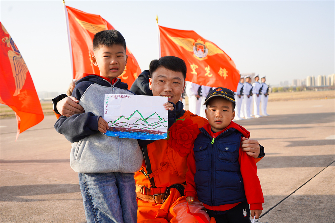 圖為今年3月30日,第42批護航任務(wù)歸建后,飛行員羅軍鋒與孩子合影的溫馨一幕。高翔 攝