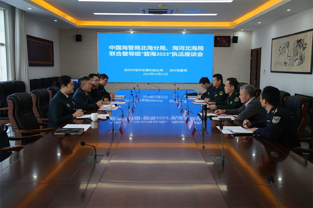圖為聯(lián)合督導組與山東省海洋與漁業(yè)執(zhí)法監(jiān)察局座談交流。