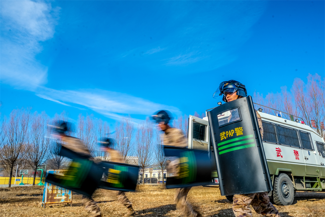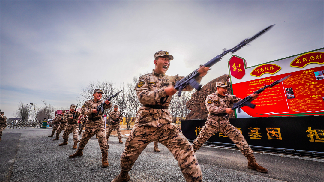 圖為中隊(duì)開展刺殺訓(xùn)練。