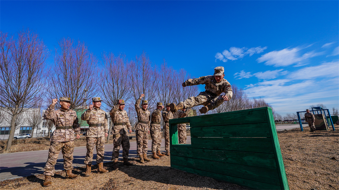 圖為中隊(duì)組織四百米障礙訓(xùn)練。