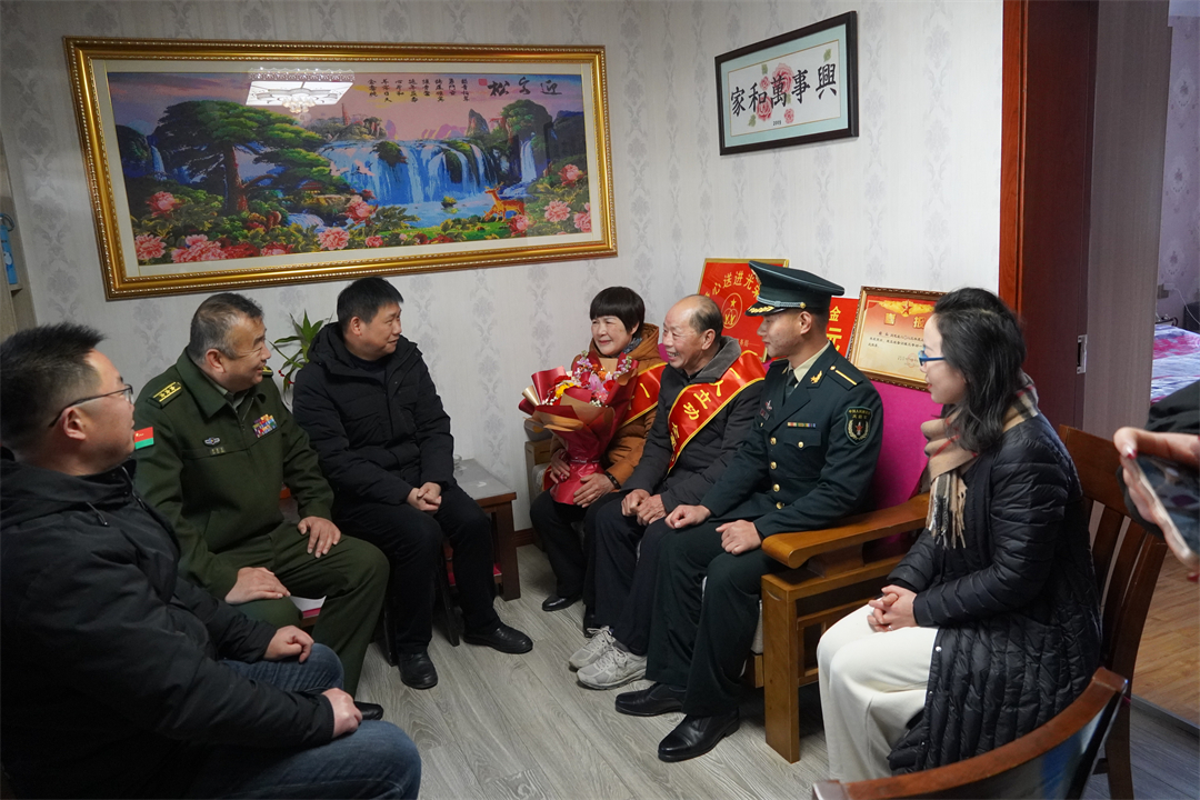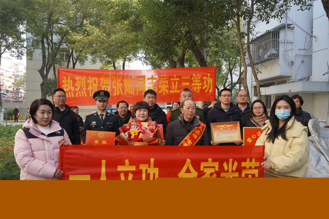 1月11日,安徽省馬鞍山市雨山區(qū)人武部聯(lián)合軍地有關(guān)部門,為榮立三等功的火箭軍某部軍官?gòu)垹N送上立功喜報(bào)和慰問金,營(yíng)造“一人立功 全家光榮”的氛圍。