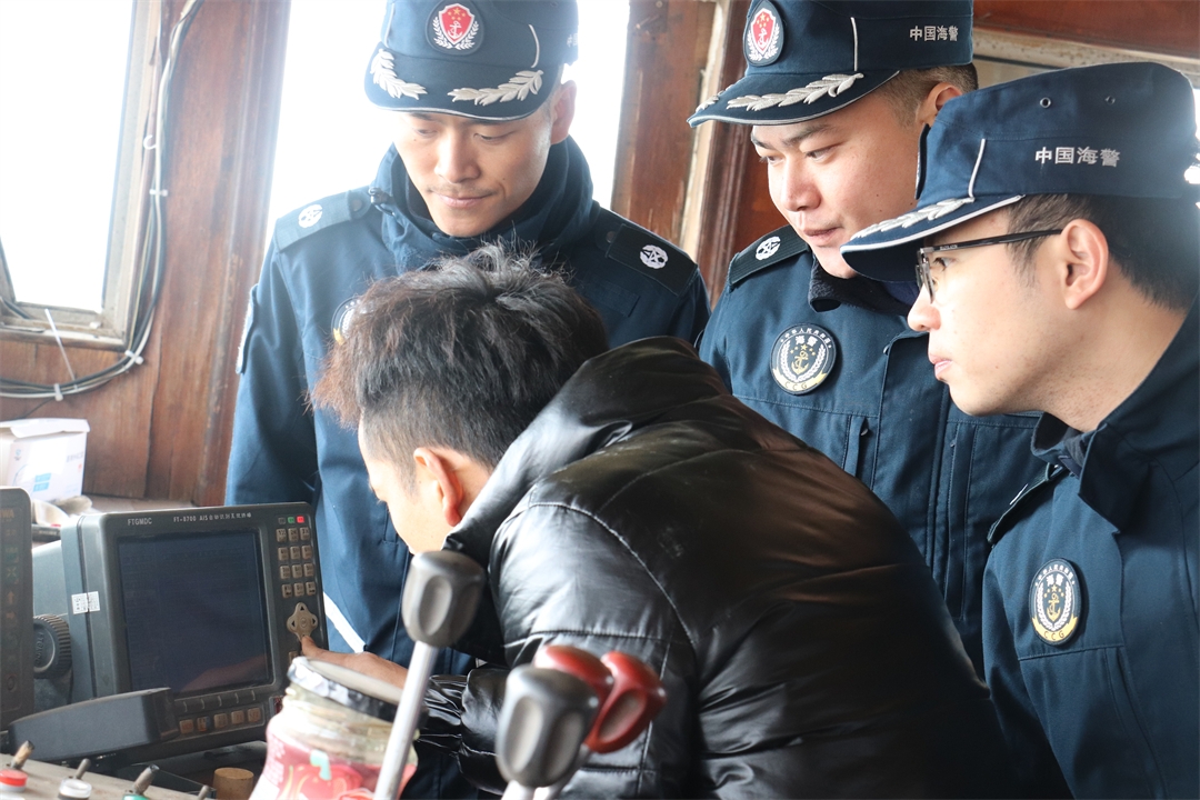 圖為海警執(zhí)法員詢問(wèn)航行軌跡。