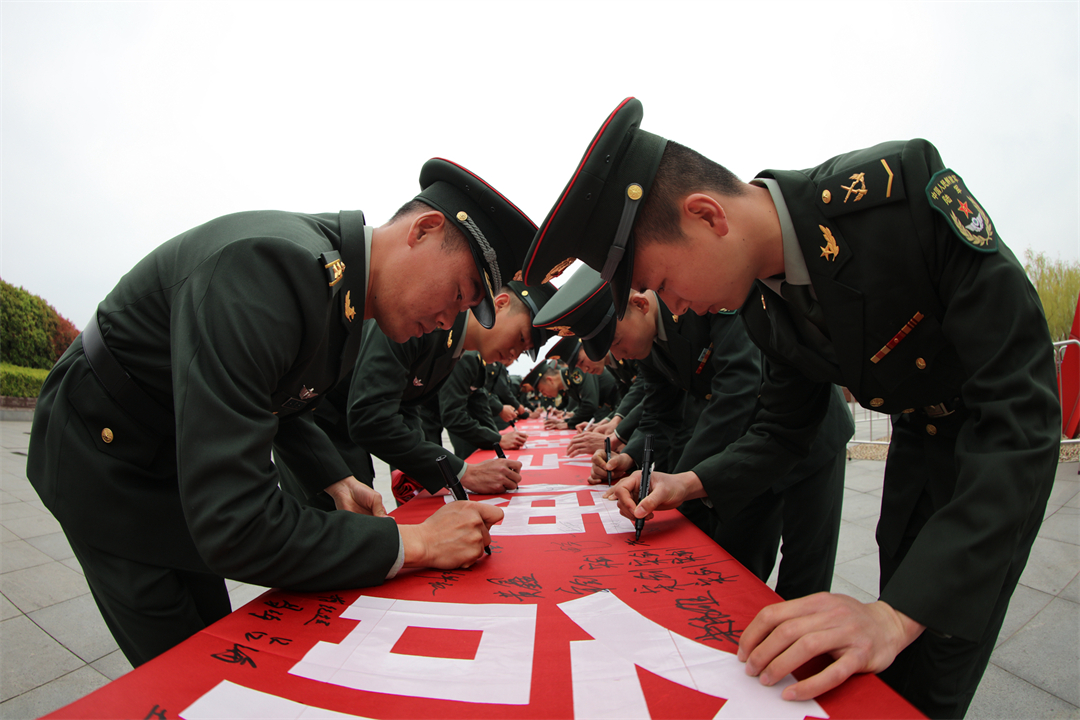 圖為3月28日,陸軍第71集團(tuán)軍“臨汾旅”組織官兵代表在“緬懷革命先烈 奮進(jìn)擔(dān)當(dāng)使命”橫幅上簽字。萬里想 攝
