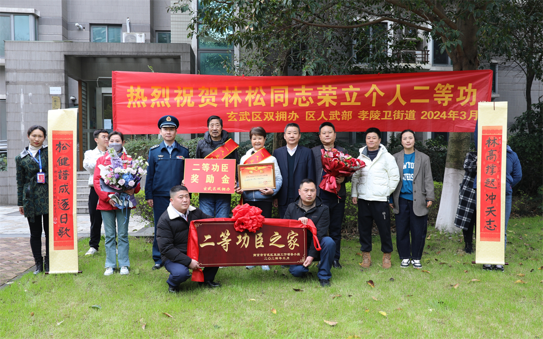 圖為3月26日,南京市玄武區(qū)軍地送喜小組為二等功臣家庭送上喜報(bào)和嵌名賀聯(lián)。賈玉川 攝