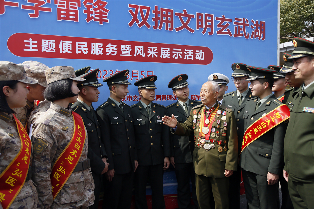 圖為2023年3月5日,雷鋒生前戰(zhàn)友趙明才向南京駐軍官兵講述雷鋒故事。張永祥 攝