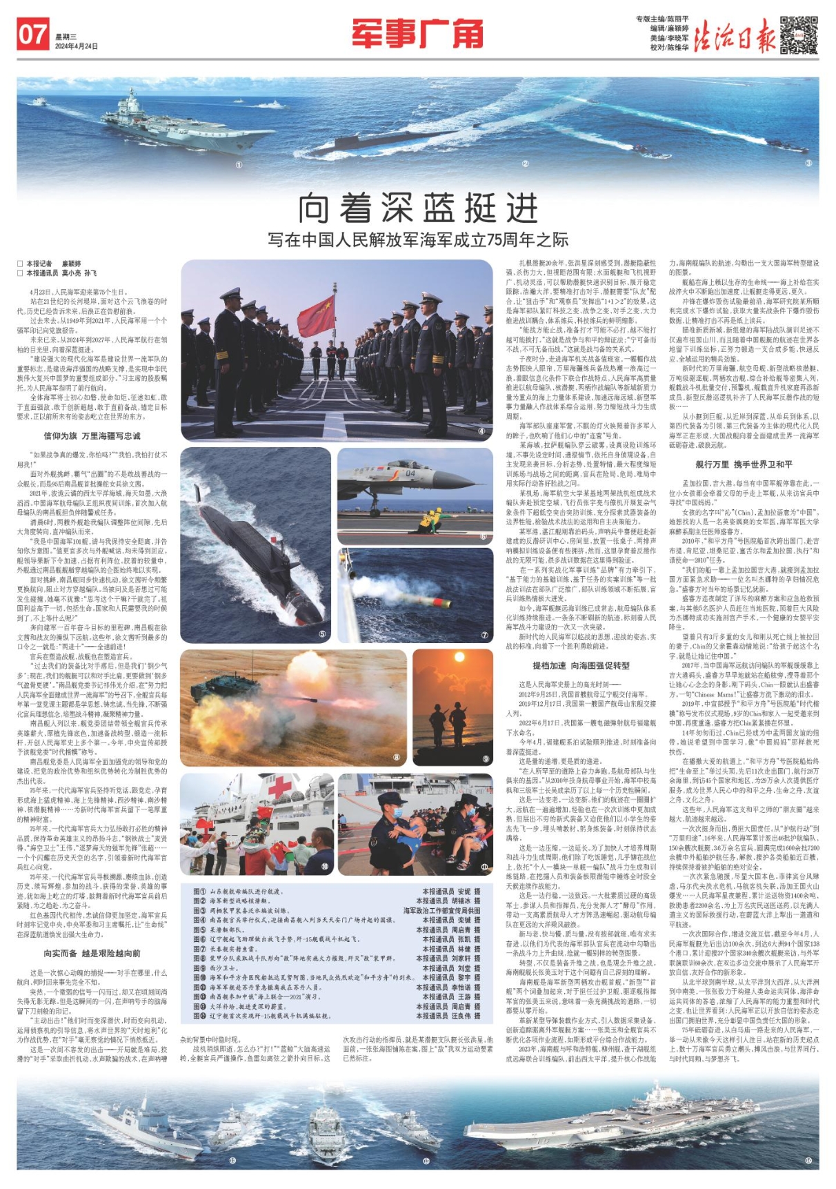 全體海軍將士初心如磐、使命如炬、征途如虹,敢于直面強(qiáng)敵、敢于創(chuàng)新超越、敢于直前備戰(zhàn),錨定目標(biāo)要求,正以前所未有的姿態(tài)屹立在世界的東方。