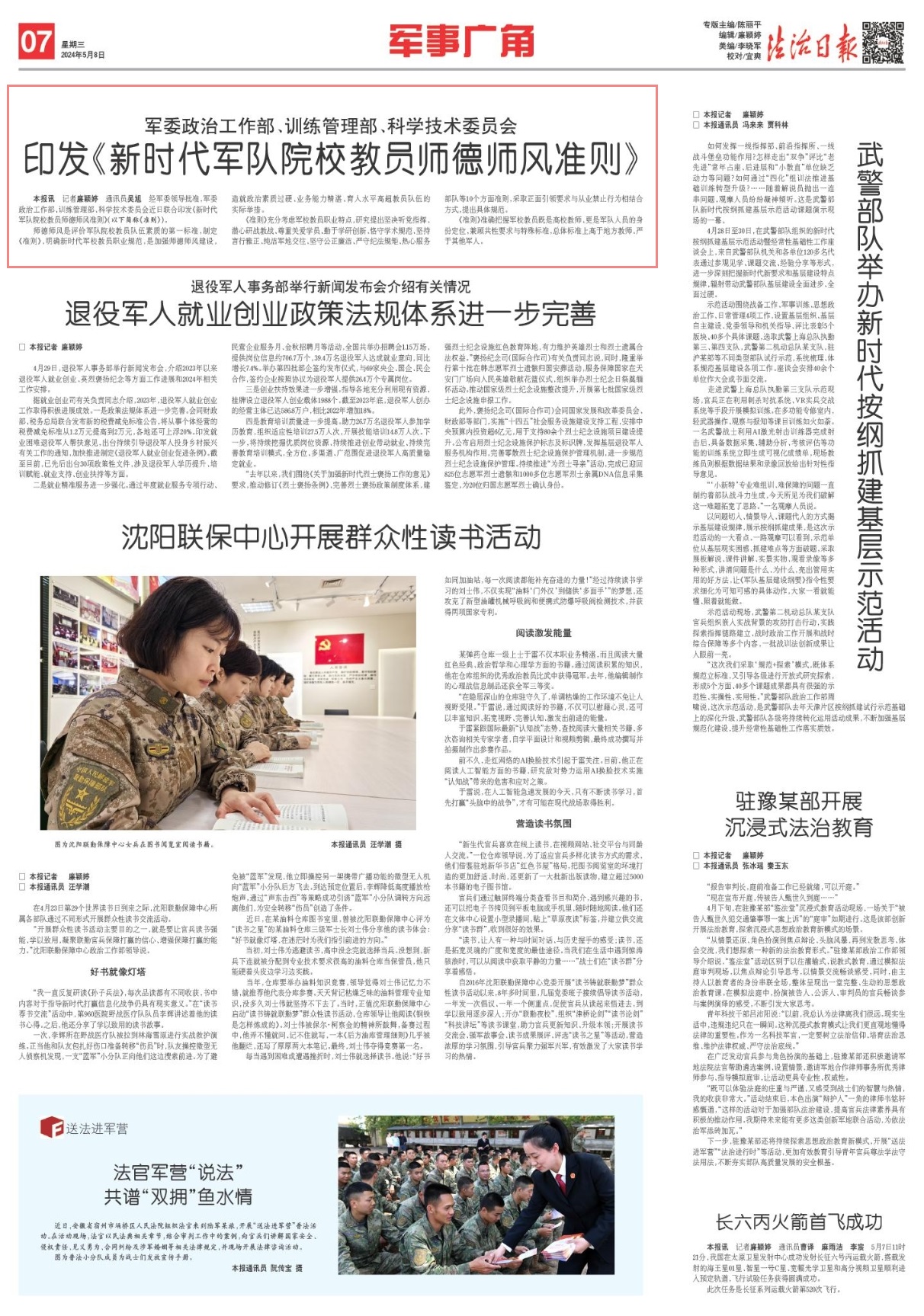 經(jīng)軍委領(lǐng)導(dǎo)批準(zhǔn),軍委政治工作部、訓(xùn)練管理部、科學(xué)技術(shù)委員會(huì)近日聯(lián)合印發(fā)《新時(shí)代軍隊(duì)院校教員師德師風(fēng)準(zhǔn)則》(以下簡(jiǎn)稱《準(zhǔn)則》)。