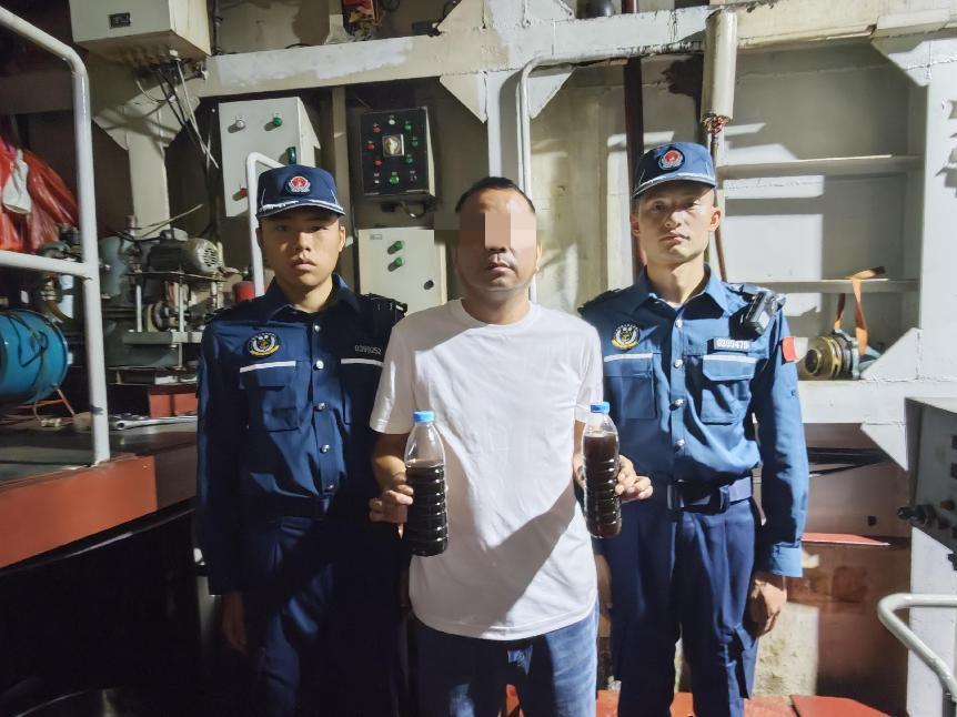 5月6日,廣東海警局接通報(bào)稱,在惠州海域發(fā)現(xiàn)一艘非法使用“紅油”貨輪即將進(jìn)入海域轄區(qū)。該局迅速派遣執(zhí)法艇查緝,并于當(dāng)日15時(shí)30分許在三門島附近海域?qū)⑵浣赝?。?jīng)查,船上共6人,海警執(zhí)法員在該船油柜及主機(jī)處均發(fā)現(xiàn)疑似“紅油”燃料油,該船船員承認(rèn)使用并存儲(chǔ)“紅油”約3噸,且無法提供相關(guān)合法手續(xù)和憑證。