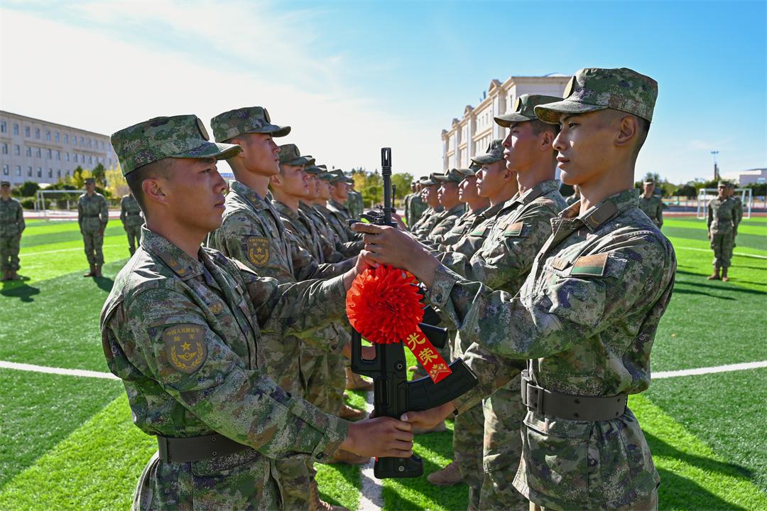 圖為“神槍手四連”官兵組織“神槍”交接儀式。何隆 攝