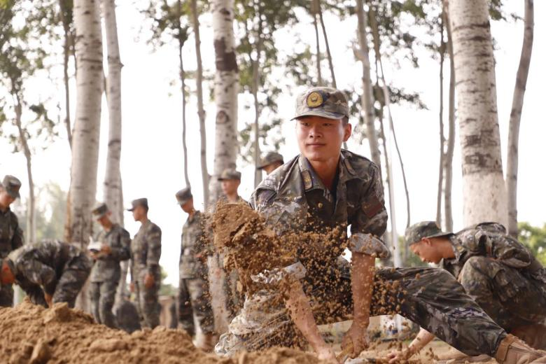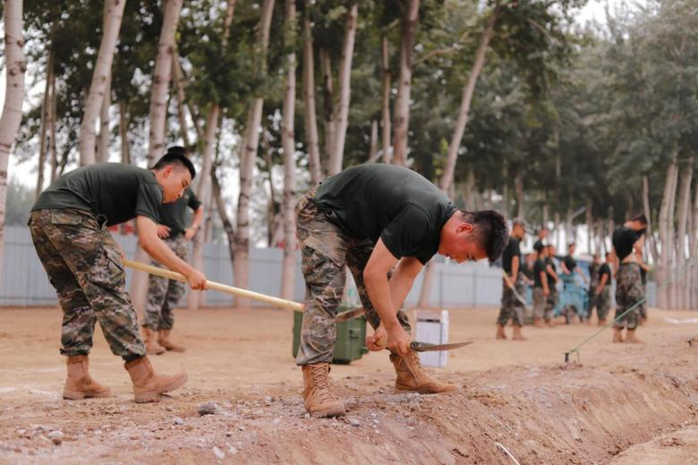 抵達(dá)駐訓(xùn)場(chǎng)后,各單位迅速展開(kāi)物資卸載、土地平整、通水通電、帳篷搭建等工作。