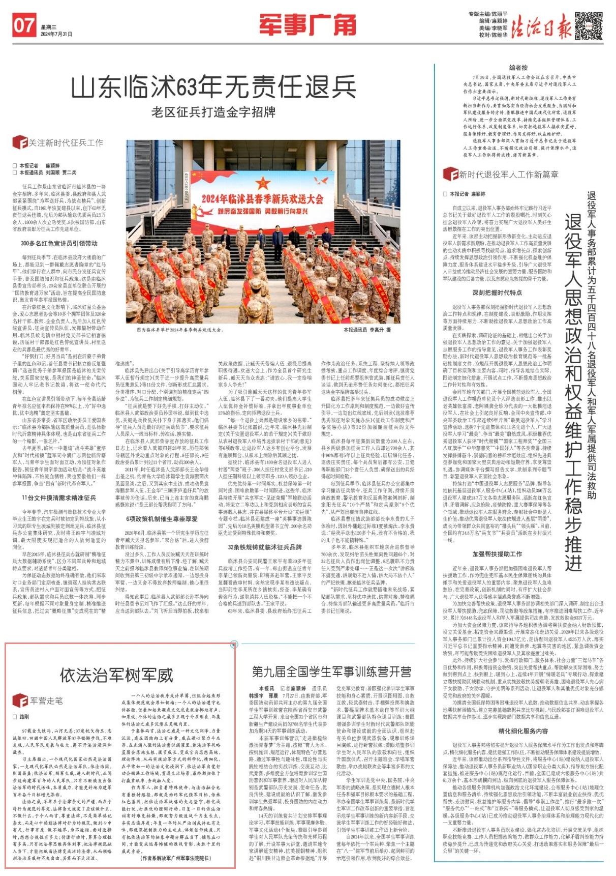 97載金戈鐵馬,山河無恙;97度枕戈待旦,忠誠依舊?;仡欀袊嗣窠夥跑?7年鏗鏘步伐,不難發(fā)現(xiàn),人民軍隊發(fā)展與壯大,離不開法治浸潤和滋養(yǎng)。