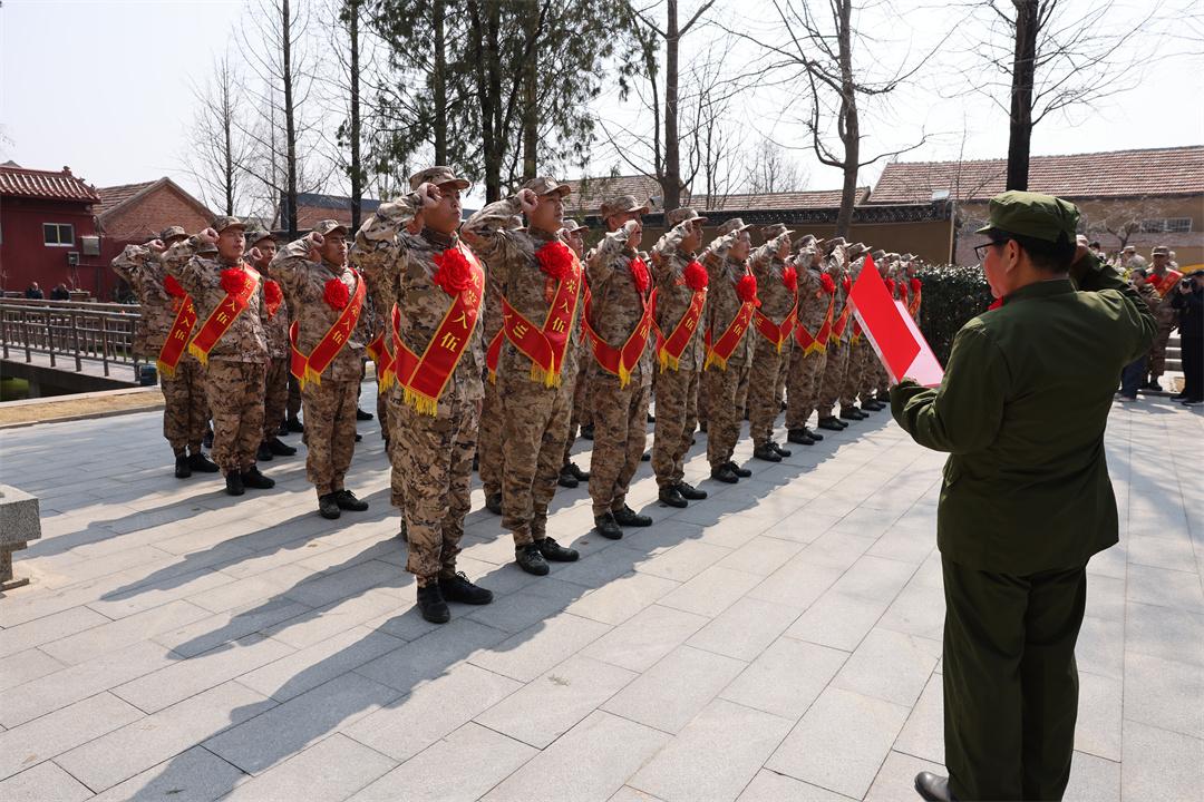 圖為臨沭縣組織預(yù)定新兵進行入伍前宣誓活動。