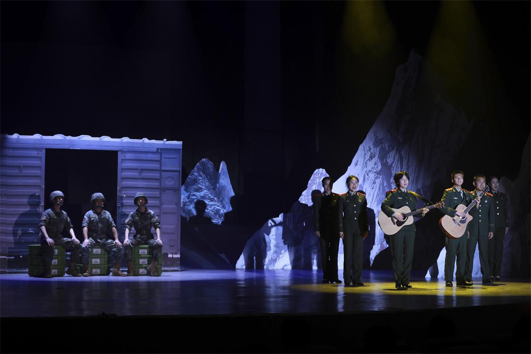 情景劇由武警青??傟?duì)官兵自創(chuàng)自排,分為“忠誠(chéng)——赤膽無(wú)畏”“使命——擔(dān)當(dāng)奉獻(xiàn)”“奮斗——凝聚前行”三個(gè)篇章,融合對(duì)白、演唱、舞蹈等多種方式,以總隊(duì)歷年來(lái)涌現(xiàn)出的張海西、段磊、張新磊、楊富祥、王賞、趙江維等先進(jìn)典型為突出代表,以官兵們執(zhí)勤處突、搶險(xiǎn)救援、精準(zhǔn)扶貧等重大任務(wù)為原型,將“兩彈一星”精神、“西路軍”精神、“老高原”精神融入其中,感人肺腑、催人淚下。