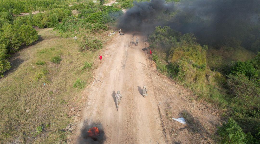 下午4時(shí)許,實(shí)兵合練正式開(kāi)始。中坦雙方參演部隊(duì)以執(zhí)行聯(lián)合反恐軍事行動(dòng)任務(wù)為背景,共同完成聯(lián)合滲透?jìng)刹臁⒍嗦贩謪^(qū)圍殲、隱蔽突入營(yíng)救、立體追擊清剿等課目演練,在近似實(shí)戰(zhàn)的環(huán)境中,錘煉提升中坦雙方官兵協(xié)同作戰(zhàn)能力。