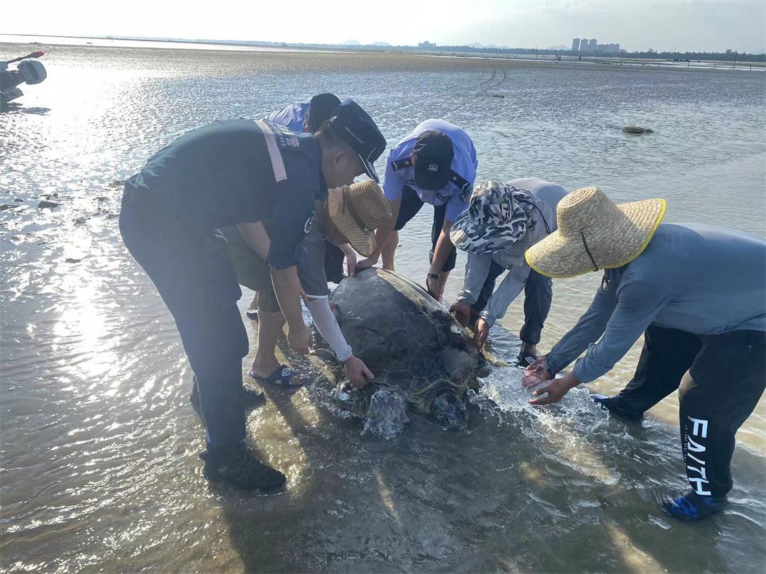 8月6日,廣東茂名海警局濱海工作站聯(lián)合駐地博賀派出所,在博賀港旅游碼頭附近海域成功救助一只擱淺海龜,并將其放生回歸海洋。