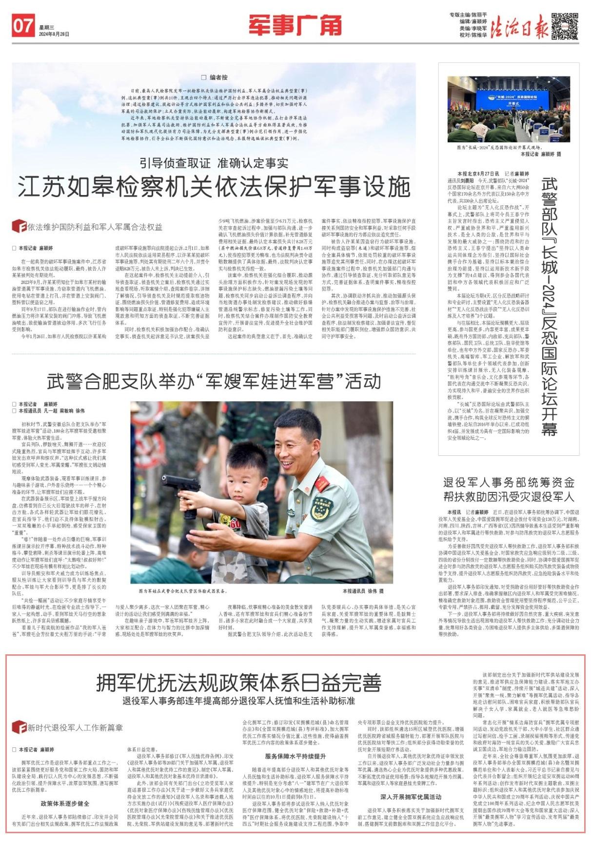 近年來,退役軍人事務(wù)部陸續(xù)修訂、印發(fā)并會(huì)同有關(guān)部門出臺(tái)相關(guān)法規(guī)政策,擁軍優(yōu)撫工作法規(guī)政策體系日益完善。