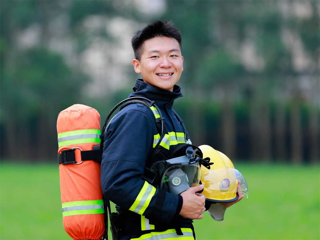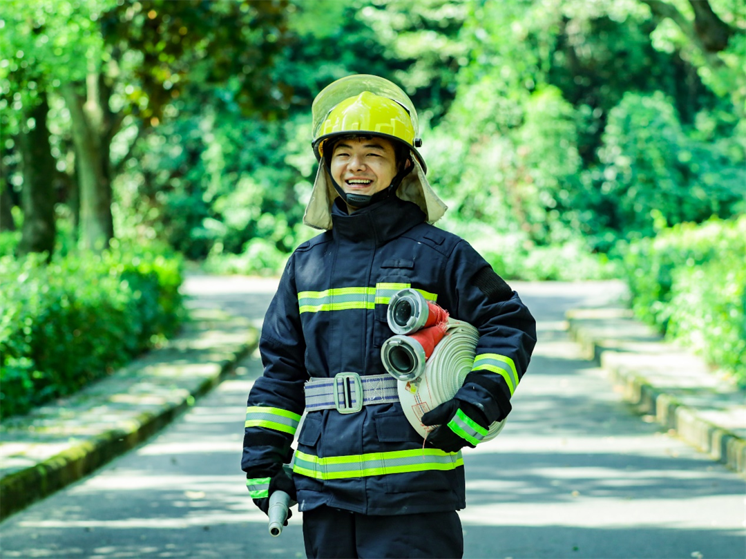 圖為下士孔維剛最后一次參加消防分隊演練。