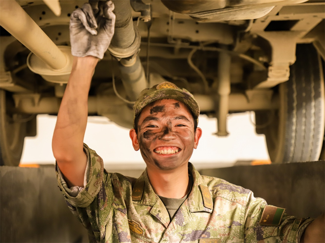 圖為中士張活活最后一次進行車輛維修。