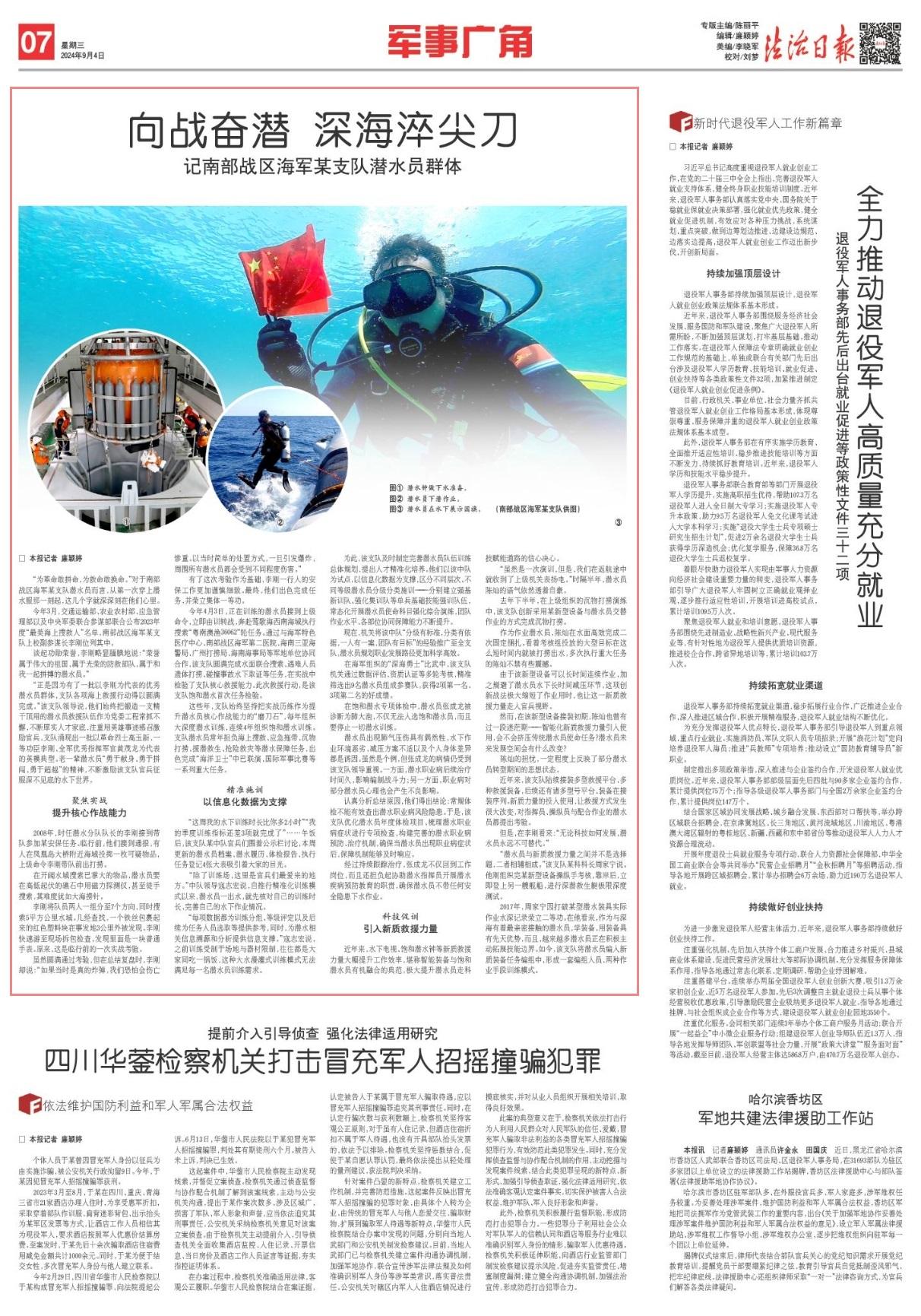在海軍組織的“深海勇士”比武中,該支隊機(jī)關(guān)通過數(shù)據(jù)評估、資質(zhì)認(rèn)證等多輪考核,精準(zhǔn)篩選出9名潛水員組成參賽隊,獲得2項第一名、3項第二名的好成績。