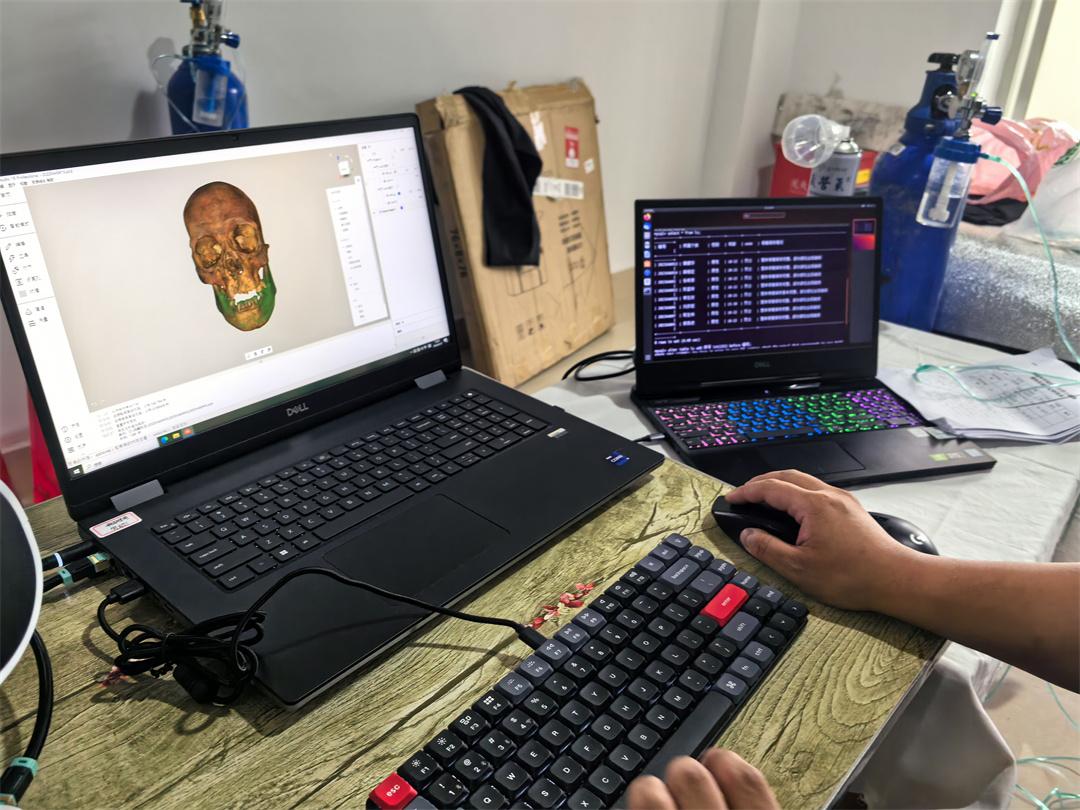 阿里地區(qū)氣候環(huán)境高寒干燥,相關(guān)遺骸顱骨大都相對保存完好。此次烈士容貌復(fù)原工作由復(fù)旦大學(xué)法庭科學(xué)研究院牽頭完成,現(xiàn)場采用3D激光掃描采集顱骨三維數(shù)據(jù)信息,融合運(yùn)用虛擬成像、AI大模型、多模態(tài)分析等前沿技術(shù)手段,盡可能復(fù)原烈士容貌,讓他們跨越時(shí)空與親人“重逢”。