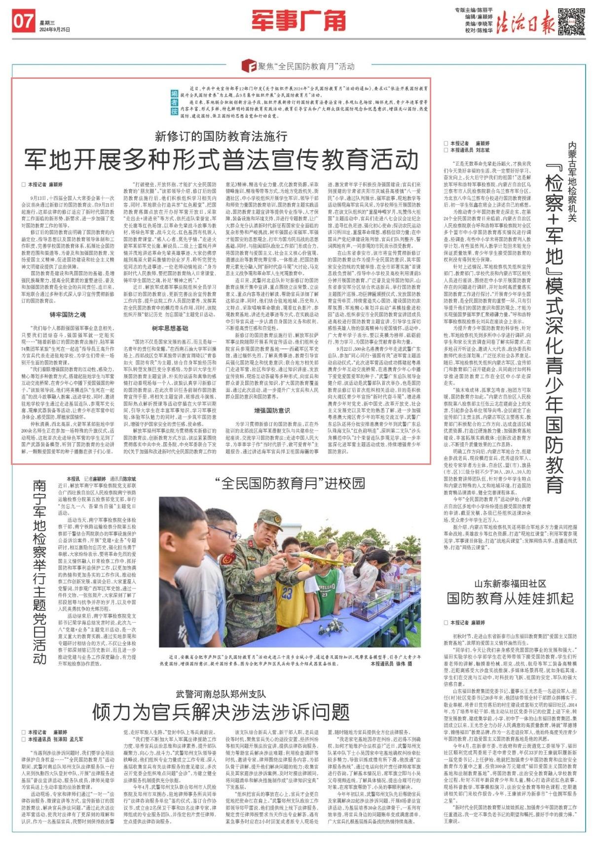 國(guó)防教育是建設(shè)和鞏固國(guó)防的基礎(chǔ),是增強(qiáng)民族凝聚力、提高全民素質(zhì)的重要途徑,普及和加強(qiáng)國(guó)防教育是全社會(huì)的共同責(zé)任。連日來,軍地聯(lián)合通過多種形式深入學(xué)習(xí)宣傳貫徹新修訂的國(guó)防教育法。
