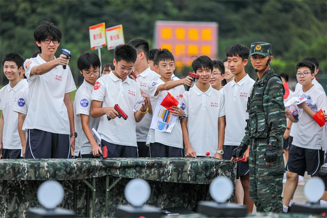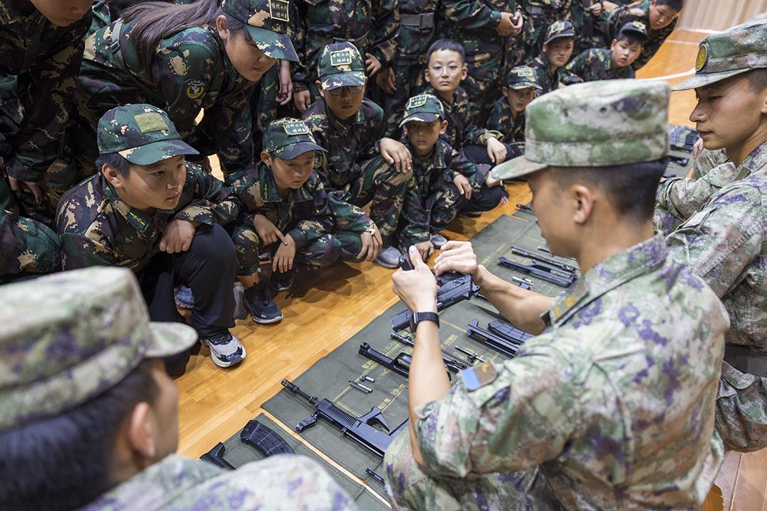 圖為武警廣東總隊(duì)開展“同心同行·強(qiáng)國(guó)有我”港澳青少年進(jìn)軍營(yíng)活動(dòng),港澳青少年參觀武器裝備。劉佳良 金家威 攝
