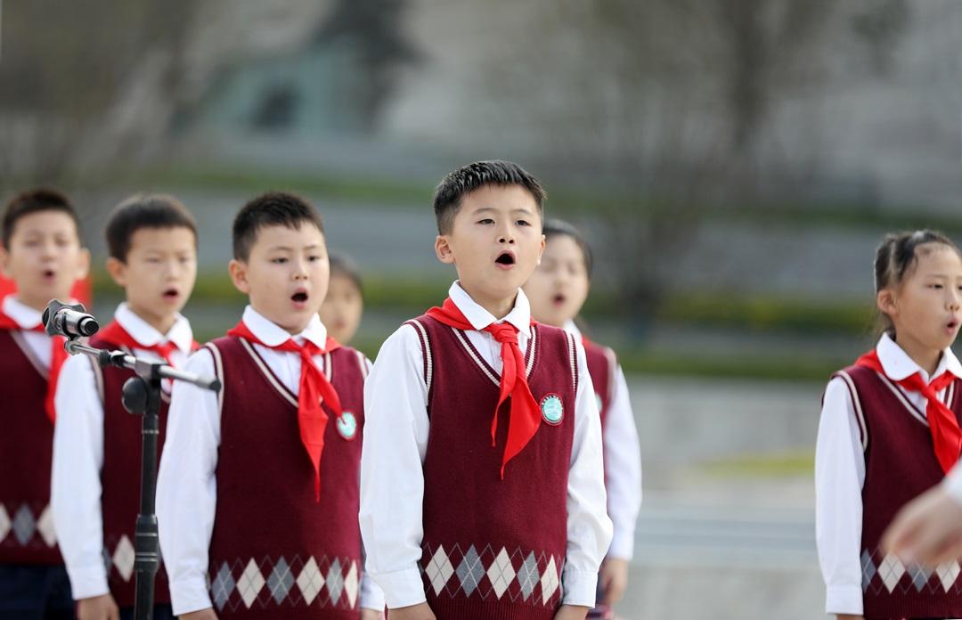 儀式上,少先隊(duì)員們集體朗誦《兩彈一星,我們把你追尋》,激勵(lì)廣大少先隊(duì)員以先輩為榜樣,傳承和弘揚(yáng)“兩彈一星”精神。