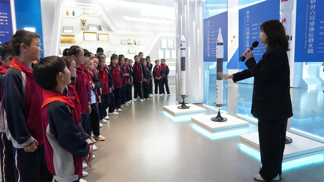 隨后,少先隊員們現(xiàn)場參觀了快舟固體運載火箭,并到火箭公司科普展廳開展見學,豐富翔實的圖文資料、視頻動畫、快舟系列火箭模型等,展示了中國航天事業(yè)輝煌成就、快舟火箭發(fā)展歷程,以及人類對未來太空探索的夢想。
