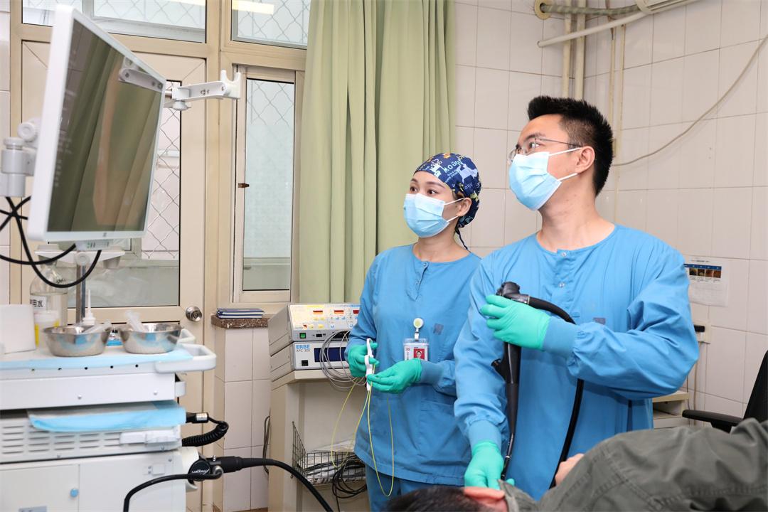 圖為解放軍總醫(yī)院第四醫(yī)學(xué)中心消化內(nèi)科陳超主任(右)和內(nèi)鏡室護(hù)士長黃福秀(左)正在為患者進(jìn)行胃鏡檢查。鞠文富 攝