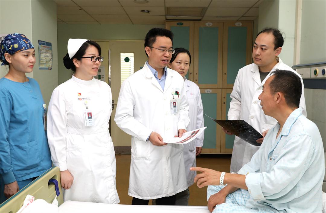 圖為解放軍總醫(yī)院第四醫(yī)學(xué)中心消化內(nèi)科陳超主任帶領(lǐng)醫(yī)護(hù)人員查看運(yùn)用“超級(jí)微創(chuàng)手術(shù)”切除胃部腫物的患者,手術(shù)后該患者恢復(fù)良好,不久就可以出院。鞠文富 攝