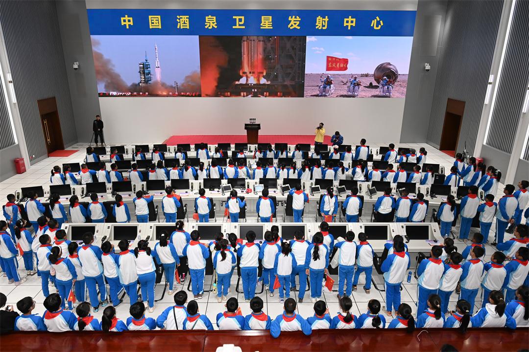 升旗儀式結(jié)束后,全體少先隊員來到東風(fēng)指揮控制大廳,這里是航天發(fā)射的任務(wù)指揮中心,神舟十九號發(fā)射任務(wù)圓滿成功的大紅屏透著喜慶的氛圍,這塊屏幕背后凝結(jié)著許許多多航天科技工作者的智慧和汗水,是他們共同托舉神箭飛天。