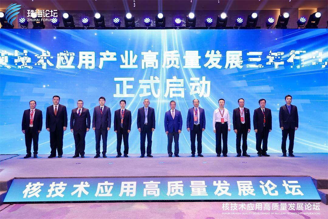 論壇上,會(huì)議嘉賓共同啟動(dòng)核技術(shù)應(yīng)用產(chǎn)業(yè)高質(zhì)量發(fā)展三年行動(dòng),國(guó)家原子能機(jī)構(gòu)系統(tǒng)工程司有關(guān)負(fù)責(zé)同志對(duì)《核技術(shù)應(yīng)用產(chǎn)業(yè)高質(zhì)量發(fā)展三年行動(dòng)方案(2024—2026年)》作詳細(xì)解讀。卞志剛為“先進(jìn)輻射源”“核醫(yī)學(xué)診療與轉(zhuǎn)化”“安檢安保”“重離子束應(yīng)用”“電子束固化應(yīng)用”5家國(guó)家原子能機(jī)構(gòu)研發(fā)中心授牌。國(guó)家核安保技術(shù)中心發(fā)起核技術(shù)應(yīng)用產(chǎn)業(yè)推廣平臺(tái)倡議。