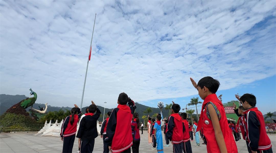 11月12日,“紅領(lǐng)巾愛祖國——我心中的五星紅旗”國旗傳遞活動,在中老鐵路磨憨站舉行。