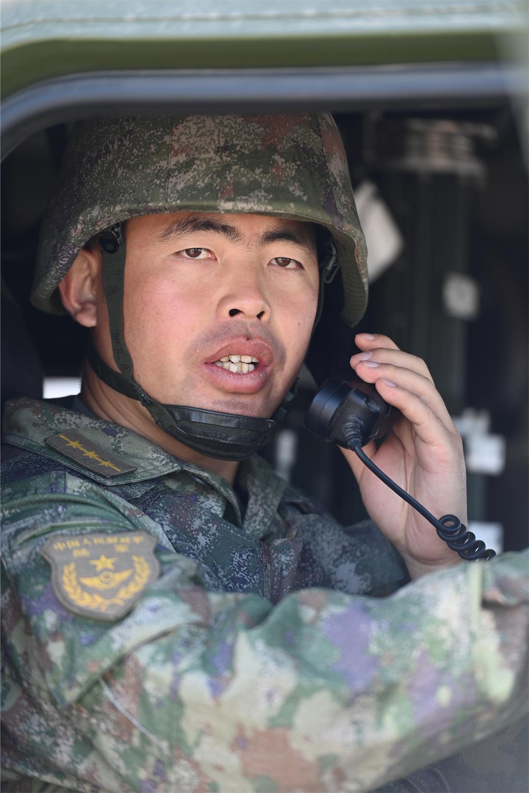 圖為郭強平在指揮車內(nèi)下達作戰(zhàn)指令。