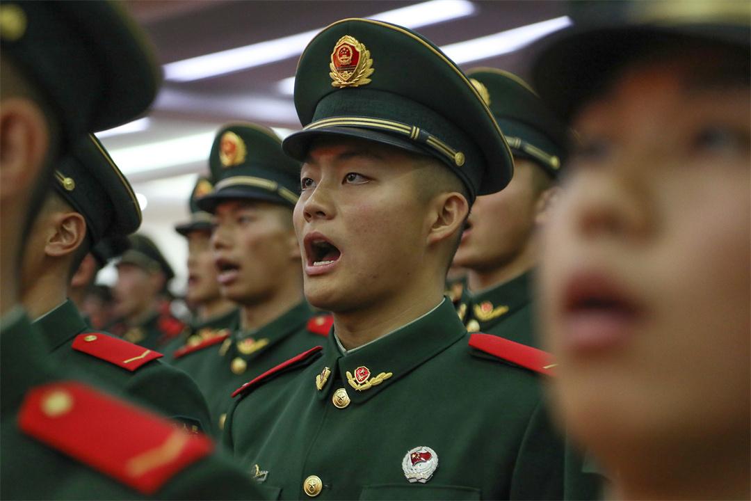 圖為新兵佩戴軍銜。